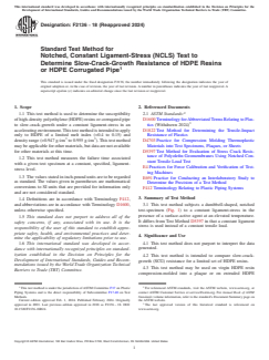 (Test Method)Standard Test Method for Notched, Constant Ligament-Stress (NCLS) Test to Determine Slow-Crack-Growth Resistance of HDPE Resins or HDPE Corrugated Pipe