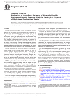 ASTM C1174-20 - Standard Guide for Evaluation of Long-Term Behavior of Materials Used in Engineered Barrier Systems (EBS) for Geological Disposal of High-Level Radioactive Waste