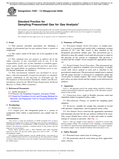 ASTM F307-13(2020) - Standard Practice for Sampling Pressurized Gas for Gas Analysis