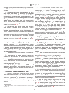SIGNIFICANCE AND USE 3.1 This guide describes approaches for using neutron fields with well known characteristics to perform calibrations of neutron sensors, to intercompare different methods of dosimetry, and to corroborate procedures used to derive neutron field information from measurements of neutron sensor response. 3.2 This guide discusses only selected standard and reference neutron fields which are appropriate for benchmark testing of light-water reactor dosimetry. The Standard Fields considered here include neutron source environments that closely approximate: a) the unscattered neutron spectra from 252Cf spontaneous fission; and b) the 235U thermal neutron induced fission. These standard fields were chosen for their spectral similarity to the high energy region (E > 2 MeV) of reactor spectra. The various categories of benchmark fields are defined in Terminology E170. 3.3 There are other well known neutron fields that have been designed to mockup special environments, such as pressure vessel mockups in which it is possible to make dosimetry measurements inside of the steel volume of the “vessel.” When such mockups are suitably characterized, they are also referred to as benchmark fields. A variety of these engineering benchmark fields have been developed, or pressed into service, to improve the accuracy of neutron dosimetry measurement techniques. These special benchmark experiments are discussed in Guide E2006, and in Refs (1)4 and (2). SCOPE 1.1 This guide covers facilities and procedures for benchmarking neutron measurements and calculations. Particular sections of the guide discuss: the use of well-characterized benchmark neutron fields to calibrate integral neutron sensors; the use of certified-neutron-fluence standards to calibrate radiometric counting equipment or to determine interlaboratory measurement consistency; development of special benchmark fields to test neutron transport calculations; use of well-known fission spectra to benchmark spectrum-averaged cross sections; and the use of benchmarked data and calculations to determine the uncertainties in derived neutron dosimetry results. 1.2 The values stated in SI units are to be regarded as standard. No other units of measurement are included in this standard. 1.3 This standard does not purport to address all of the safety concerns, if any, associated with its use. It is the responsibility of the user of this standard to establish appropriate safety, health, and environmental practices and determine the applicability of regulatory limitations prior to use. 1.4 This international standard was developed in accordance with internationally recognized principles on standardization established in the Decision on Principles for the Development of International Standards, Guides and Recommendations issued by the World Trade Organization Technical Barriers to Trade (TBT) Committee.