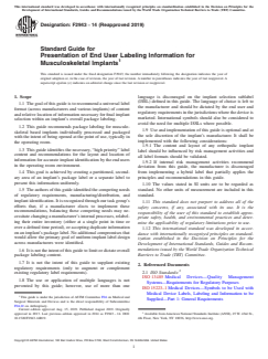 ASTM F2943-14(2019) - Standard Guide for Presentation of End User Labeling Information for Musculoskeletal Implants