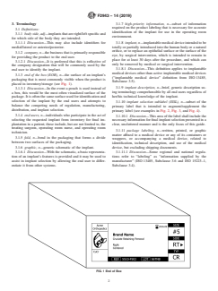SIGNIFICANCE AND USE 4.1 Implantable medical device labeling often results in a variety of label formats and information prioritization. This variability can be seen not only across different manufacturers but also across different implant types.3 At present label design and layout is developed by a given manufacturer and represents balancing internal needs (such as manufacturing, distribution, and marketing), regulatory requirements within various markets, and end user needs (as identified by individual manufacturers performing “voice of the consumer” feedback on their label designs). 4.2 At no fault to any given manufacturer, this process, along with the manner in which label information competes for available “real estate” on a package, often leads to variable prioritization of label information and highly variable label designs. The impact of this variability on patient care is not well documented within the published literature. An article from AAOS Now in 2009 described potential issues around label variability and gave anecdotal evidence of its impact.3 4.3 No published literature demonstrating a clear and conclusive impact on patient safety resulting from implant label variability was identified. Despite this lack of evidence, anecdotal observations and input from various involved individuals and organizations (surgeons, operating room nurses, hospital administrators, product representatives, and manufacturers) suggests a potential, although unproven, benefit for an increased standardization of implant labeling. 4.4 The authors of this guide believe it is important to highlight that no universally accepted method for validation of a label’s effectiveness exists. Current validation methods consist of varying methods of customer feedback on an existing label design using formal customer questionnaires, informal customer feedback through individual polling, and internal manufacturer-driven studies. The label recommendations presented within this guide have not been valida... SCOPE 1.1 The goal of this guide is to recommend a universal label format (across manufacturers and various implants) of content and relative location of information necessary for final implant selection within an implant’s overall package labeling. 1.2 This guide recommends package labeling for musculoskeletal based implants individually processed and packaged with the intent of being opened at the point of use, typically in the operating room. 1.3 This guide identifies the necessary, “high priority” label content and recommendations for the layout and location of information for accurate implant identification by the end users in the operating room environment. 1.4 This goal is achieved by creating a partitioned, secondary area of an implant’s package label or a separate label to present this information uniformly. 1.5 The authors of this guide identified the competing needs of regulatory requirements, manufacturing/distribution, and implant identification. It is recognized through our task group’s efforts that, if a manufacturer elects to implement these recommendations, balancing these competing needs may necessitate changing a manufacturer’s internal processes, relabeling their entire inventory (either at a single point in time or over a defined time period), or accepting duplicate information on an implant’s package label. No additional compromises that would allow the primary goal of uniform implant label design across manufacturers were identified. 1.6 It is not the intent of this guide to limit or dictate overall package labeling content. 1.7 It is not the intent of this guide to supplant existing regulatory requirements (only to augment or complement existing regulatory label requirements). 1.8 The use or application of multiple languages is not prevented by this guide; however, use of more than one language is discouraged on the implant selection sublabel (ISSL) defined in this guide. The langua...