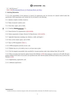 - Ordering Information: Purchasers must specify material type, form, condition, finish, surface preparation, dimensions, cross-section, and other relevant requirements in their orders.