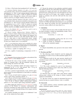 - Reporting and Precision: Offers guidelines for calculating and reporting demulsibility as mass percent residue and establishing data repeatability and reproducibility.