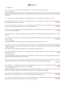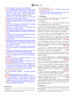 ASTM E3203-21 is a standard published by ASTM International. Its full title is "Standard Test Method for Determination of Lead in Dried Paint, Soil, and Wipe Samples by Inductively Coupled Plasma-Optical Emission Spectroscopy (ICP-OES)". This standard covers: SIGNIFICANCE AND USE 5.1 This test method is intended for use with other standards that address the collection and preparation of samples (dusts by wipe, dried paint chips, and soils) that are obtained during the assessment or mitigation of lead hazards from buildings and related structures. 5.2 Laboratories analyzing samples obtained during the assessment or mitigation of lead hazards from buildings and related structures shall conform to Practice E1583, or shall be recognized for lead analysis as promulgated by authorities having jurisdiction, or both. Note 1: In the United States of America, laboratories performing analysis of samples collected during lead-based paint activities are required to be accredited to ISO/IEC 17025 and to other requirements promulgated by the Environmental Protection Agency (EPA). 5.3 This test method may also be used to analyze similar samples from other environments such as toxic characteristic extracts of waste sampled using Guide E1908 as prepared for analysis using EPA SW-846 Test Method 1311. SCOPE 1.1 This test method specifies a procedure for analysis of dried paint, soil, and dust wipe samples collected in and around buildings and related structures for lead content using inductively coupled plasma-optical emission spectroscopy (ICP-OES). 1.2 This test method should be used by analysts experienced in the use of ICP-OES, the interpretation of spectral and matrix interferences, and procedures for their correction. For determination of lead (Pb) and other metals in air by ICP-OES, see Test Method D7035. 1.3 This test method cites specific methods for preparing test solutions of dried paint, soil, and wipe samples for analysis. 1.4 It is the user’s responsibility to ensure the validity of this test method for sampling materials of untested matrices. 1.5 No detailed operating instructions are provided because of differences among various makes and models of suitable ICP-OES instruments. Instead, the analyst shall follow the instructions provided by the manufacturer of the particular instrument. This test method does not address comparative accuracy of different devices or the precision between instruments of the same make and model. 1.6 This test method contains notes that are explanatory and are not part of the mandatory requirements of this test method. 1.7 The values stated in SI units are to be regarded as standard. No other units of measurement are included in this standard. 1.7.1 Exception—The inch-pound and SI units shown for wipe sampling data are to be individually regarded as standard for wipe sampling data. 1.8 This standard does not purport to address all of the safety concerns, if any, associated with its use. It is the responsibility of the user of this standard to establish appropriate safety, health, and environmental practices and determine the applicability of regulatory limitations prior to use. 1.9 This international standard was developed in accordance with internationally recognized principles on standardization established in the Decision on Principles for the Development of International Standards, Guides and Recommendations issued by the World Trade Organization Technical Barriers to Trade (TBT) Committee.