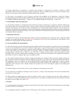 ASTM C1710-24 is a guide published by ASTM International. Its full title is "Standard Guide for Installation of Flexible Closed Cell Preformed Insulation in Tube and Sheet Form". This standard covers: SIGNIFICANCE AND USE 5.1 This guide applies to flexible closed cell insulation tubing and sheet materials manufactured according to Specifications C534 and C1427. This standard is intended to provide a basic guide for installing these types of materials. 5.2 Confirm application use temperature is consistent with specified use temperature for material as defined in ASTM Specifications unless otherwise agreed upon with the manufacturer. There are different grades for each of the insulation types referred to in this guide, material and grade installed should be that specified. 5.3 This guide is not intended to cover all aspects associated with installation for all applications, consult the National, Commercial Industrial Insulation Standards (MICA Manual) or the specific product manufacturer for recommendations, or both. See ASHRAE Handbook (Fundamentals – Chapter 23) and ASHRAE Handbook (Refrigeration – Chapter 10). SCOPE 1.1 This guide covers recommended installation techniques for flexible closed cell pre-formed insulation in tube or sheet form. This guide is applicable to materials manufactured in accordance with Specification C534 (Elastomeric based insulation) or Specification C1427 (polyolefin based insulation). The materials covered in this guide encompass a service temperature of –297 to 300°F (–183 to 150°C) as indicated in the material specifications referenced above. Many of the recommendations made are specific to below ambient applications only. 1.2 The purpose of this guide is to optimize the thermal performance and longevity of installed closed cell flexible insulation systems. By following this guide, the owner, and designer can expect to achieve the energy savings expected and prevention of condensation under the specified design conditions. This document is limited to installation procedures and does not encompass system design. 1.3 The values stated in inch-pound units are to be regarded as standard. The values given in parentheses are mathematical conversions to SI units that are provided for information only and are not considered standard. 1.4 This standard does not purport to address all of the safety concerns, if any, associated with its use. It is the responsibility of the user of this standard to establish appropriate safety, health, and environmental practices and determine the applicability of regulatory limitations prior to use. 1.5 This international standard was developed in accordance with internationally recognized principles on standardization established in the Decision on Principles for the Development of International Standards, Guides and Recommendations issued by the World Trade Organization Technical Barriers to Trade (TBT) Committee.