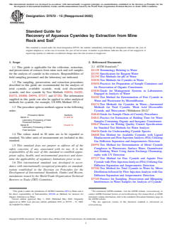ASTM D7572-15(2022) - Standard Guide for Recovery of Aqueous Cyanides by Extraction from Mine Rock and Soil