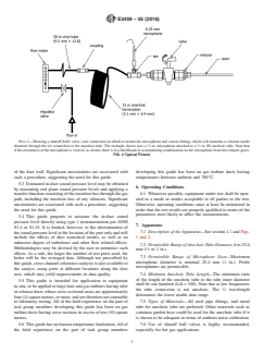 SIGNIFICANCE AND USE 5.1 All noise control features associated with the inlet or exhaust of large industrial fans and gas turbines are, or should be, based upon inlet or exhaust sound power levels in octave bands of frequency. Sound power levels are not directly measurable, however, so they must be calculated indirectly, using estimated or measured duct interior sound pressure levels. 5.2 Estimated in-duct sound pressure level may be obtained by measuring exterior airborne sound pressure levels and applying a transfer function representing the transmission loss of the duct wall. Significant uncertainties are associated with such a procedure, suggesting the need for this guide. 5.3 Estimated in-duct sound pressure level may be obtained by measuring exit plane sound pressure levels and applying a transfer function consisting of the insertion loss through the gas path, including the insertion loss of any silencers. Significant uncertainties are associated with such a procedure, suggesting the need for this guide. 5.4 This guide purports to measure the in-duct sound pressure level directly using type 1 instrumentation per ANSI S1.4 or S1.43. It is limited, however, to the determination of the sound pressure level at the location of the port only and will include the effects of duct acoustical modes, as well as an unknown degree of turbulence and other flow related effects. Methodologies may be devised by the user to minimize such effects. As a rule, the larger the number of test ports used, the better will be the averaged data. Although not prescribed by this guide, cross-channel coherence analysis is also available to the analyst, using ports at different locations along the duct axis, which may yield improvements in data quality. 5.5 This guide is intended for application to equipment in-situ, to be applied to large fans and gas turbines having inlet or exhaust ducts whose cross sectional areas are approximately four (4) square meters, or more, and are therefore not amenable t... SCOPE 1.1 This guide is intended to provide a simple and consistent procedure for the in-situ field measurement of in-duct sound pressure levels in large low pressure industrial air ducts, such as for gas turbines or fans, where considerations such as flow velocity, turbulence or temperature prevent the insertion of sound pressure sensors directly into the flow. This standard guide is intended for both ambient temperature intake air and hot exhaust gas flow in ducts having cross sections of four (4) square meters, or more. 1.2 The described procedure is intended to provide a repeatable and reproducible measure of the in-duct dynamic pressure level at the inlet or exhaust of the gas turbine, or fan. The guide is not intended to quantify the “true” sound pressure level or sound power level. Silencers, as well as Waste Heat Boilers, must be designed using the in-duct sound power level as the basis. Developing the true sound power level based on in-duct measurements of true sound pressure within a complete operating system is complex and procedures are developmental and often proprietary. 1.3 This standard does not purport to address all of the safety concerns, if any, associated with its use. It is the responsibility of the user of this standard to establish appropriate safety and health practices and determine the applicability of regulatory limitations prior to use. Extreme caution is mandatory when working near hot exhaust gas systems and appropriate safety precautions such as the installation of quick acting isolation valves are recommended.