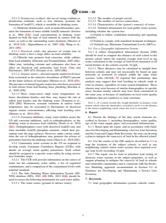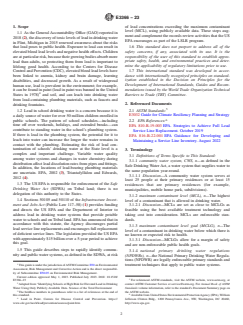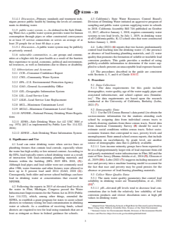 ASTM E3366-23 is a guide published by ASTM International. Its full title is "Standard Guide for Using Publicly Available Data to Identify Schools and Vulnerable Communities at High Risk for Elevated Lead in Drinking Water". This standard covers: SIGNIFICANCE AND USE 4.1 Lead can enter drinking water when service lines or plumbing fixtures that contain lead corrode, especially where the water has high acidity or low mineral content. According to the EPA, lead typically enters school drinking water as a result of interaction with lead-containing plumbing materials and fixtures within the building (EPA 2019 EPA 2018, (5)). Although lead pipes and lead solder were not commonly used after 1986, water fountains and other fixtures were allowed to have up to 8 percent lead until 2014 (GAO, 2018 (2)). Consequently, both older and newer school buildings can have lead in drinking water at concentrations that exceed the NPDWR. 4.2 Following the reports in 2015 of elevated lead levels in the water in Flint, Michigan, Congress passed the Water Infrastructure Improvements for the Nation Act in 2016 (Public Law 114-322), which, among other things, amended the SDWA, to establish a grant program for states to assist school districts in voluntary testing for lead contamination in drinking water at schools. As a condition of receiving funds, school districts are required to test for lead using standards that are at least as stringent as those in federal guidance for schools. 4.3 California’s State Water Resources Control Board’s Division of Drinking Water initiated an aggressive program of sampling and public water systems supplying water to schools in 2018. California Assembly Bill 746 published on October 12, 2017, effective January 1, 2018, requires community water systems to test lead levels, by July 1, 2019, in drinking water at all California public, K-12 school sites that were constructed before January 1, 2010. 4.4 Lobo (2021) (6) reports that two factors predominantly control lead leaching into the drinking water: (1) the presence or absence of lead-bearing plumbing materials, and (2) water quality that promotes the formation of soluble or insoluble lead corrosion products. This guide provides a method of using publicly-available... SCOPE 1.1 As the General Accountability Office (GAO) reported in 2018 (2), the discovery of toxic levels of lead in drinking water in Flint, Michigan in 2015 renewed awareness about the risks that lead poses to public health. Exposure to lead can result in elevated blood lead levels and negative health effects. Children are at particular risk, because their growing bodies absorb more lead than adults, so protecting them from lead is important to lifelong good health. According to the Centers for Disease Control and Prevention (CDC), elevated blood lead levels have been linked to anemia, kidney and brain damage, learning disabilities, and decreased growth. As a result of widespread human use, lead is prevalent in the environment; for example, it can be found in paint (lead in paint was banned in the United States in 1978)4 and soil, and can leach into drinking water from lead-containing plumbing materials, such as faucets and drinking fountains. 1.2 Lead in school drinking water is a concern because it is a daily source of water for over 50 million children enrolled in public schools. The pattern of school schedules—including time off over weekends, holidays, and extended breaks—can contribute to standing water in the school’s plumbing system. If there is lead in the plumbing system, the potential for it to leach into water can increase the longer the water remains in contact with the plumbing. Estimating the risk of lead contamination of schools' drinking water at the State level is a complex and important challenge. Variable water quality among water systems and changes in water chemistry during distribution affect lead dissolution rates from pipes and fittings. In addition, the locations of lead-bearing plumbing materials are uncertain. EPA, 2002 (3), Triantafyllidou and Edwards, 2012 (4). 1.3 The US EPA is responsible for enforcement of the Safe Drinking Water Act (SDWA) on Tribal land; there is no delegation of this ...