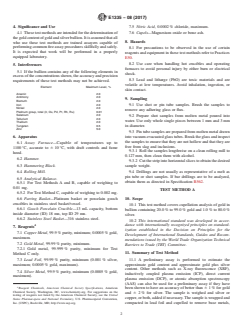 - Outlines different methods within the standard for varying gold concentrations (low, medium, and high purities).