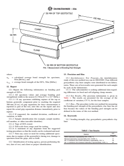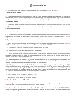 SIGNIFICANCE AND USE 5.1 The bonding strength test for the top and bottom layers of the geosynthetic clay liner is intended to be an index test. It is anticipated that the results of the test will be used to evaluate the quality of the bonding process. SCOPE 1.1 This test method covers the laboratory determination of the average bonding strength between the top and bottom layers of a sample of a geosynthetic clay liner (GCL). 1.2 The values stated in either SI units or inch-pound units are to be regarded separately as standard. The values stated in each system may not be exact equivalents; therefore, each system shall be used independently of the other. Combining values from the two systems may result in nonconformance with the standard. 1.3 This standard does not purport to address all of the safety concerns, if any, associated with its use. It is the responsibility of the user of this standard to establish appropriate safety, health, and environmental practices and determine the applicability of regulatory limitations prior to use. 1.4 This international standard was developed in accordance with internationally recognized principles on standardization established in the Decision on Principles for the Development of International Standards, Guides and Recommendations issued by the World Trade Organization Technical Barriers to Trade (TBT) Committee.