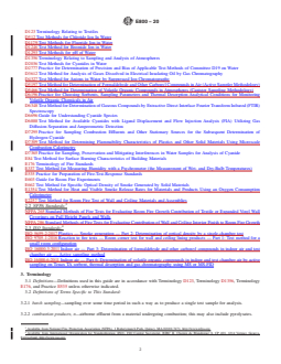 ASTM E800-20 references a broad set of related standards which provide methods and terminology, including but not limited to: