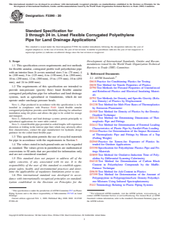 ASTM F3390-20 - Standard Specification for 3 through 24 in. Lined Flexible Corrugated Polyethylene Pipe for Land Drainage Applications