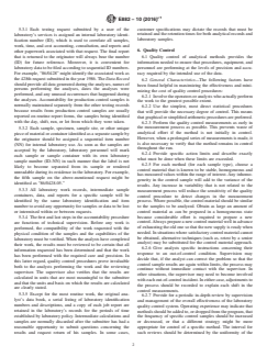 SIGNIFICANCE AND USE 4.1 An accountability and quality control system is established by laboratory management to improve the quality of its results. It provides documented records which serve to assure users of the laboratory's services that a specified level of precision is achieved in the routine performance of its measurements and that the data reported were obtained from the samples submitted. The system also provides for: early warning to analysts when methods or equipment begin to develop a bias or show deterioration of precision; the protection and retrievability of data (results); traceability and control of samples as they are processed through the laboratory; good communication of sample information between submitters, analysts, and supervision; and information on sample processing history. This guide describes such a system. Other accountability and quality control programs can be developed. Such programs can be equivalent to the program in this guide if they provide all of the benefits mentioned above. SCOPE 1.1 This guide covers the essential aspects of an accountability and quality control program for a chemical analysis laboratory. The reasons for establishing and operating such a program are discussed. 1.2 This international standard was developed in accordance with internationally recognized principles on standardization established in the Decision on Principles for the Development of International Standards, Guides and Recommendations issued by the World Trade Organization Technical Barriers to Trade (TBT) Committee.