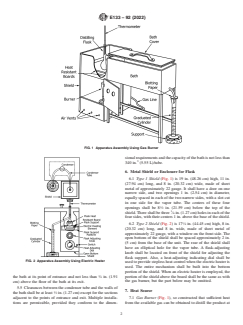 This specification covers distillation equipment. The equipment shall consist of the following: distillation flasks, condenser, cooling bath, metal shield or enclosure for flask (type 1 or type 2), heat source (gas burner or electric heater), flask support (type 1 or type 2), graduated cylinders, and thermometers.