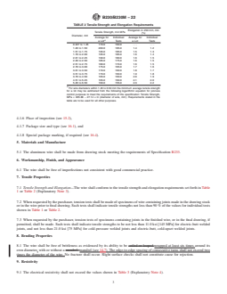- Material Requirements: The standard applies to aluminum 1350–H19, specifying that the wire must be made from appropriate drawing stock and be free of brittleness. Joints may be introduced using permitted welding techniques if agreed upon by the manufacturer and purchaser.