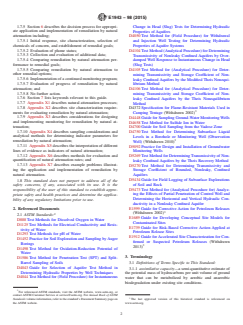 ASTM E1943-98(2015) is a guide published by ASTM International. Its full title is "Standard Guide for Remediation of Ground Water by Natural Attenuation at Petroleum Release Sites". This standard covers: SIGNIFICANCE AND USE 4.1 The approach presented in this guide is a practical and streamlined process for determining the appropriateness of remediation by natural attenuation and implementing remediation by natural attenuation at a given petroleum release site. This information can be used to evaluate remediation by natural attenuation along with other remedial options for each site. 4.2 In general, remediation by natural attenuation may be used in the following instances: 4.2.1 As the sole remedial action at sites where immediate threats to human health, safety and the environment do not exist or have been mitigated, and constituents of concern are unlikely to impact a receptor; 4.2.2 As a subsequent phase of remediation after another remedial action has sufficiently reduced concentrations/mass in the source area so that plume impacts on receptors are unlikely; or 4.2.3 As a part of a multi-component remediation plan. 4.3 This guide is intended to be used by environmental consultants, industry, and state and federal regulators involved in response actions at petroleum release sites. Activities described in this guide should be performed by a person appropriately trained to conduct the corrective action process. 4.4 The implementation of remediation by natural attenuation requires that the user exercise the same care and professional judgement as with any other remedial alternative by: 4.4.1 Ensuring that site characterization activities focus on collecting information required to evaluate and implement remediation by natural attenuation; 4.4.2 Evaluating information to understand natural attenuation processes present at the site; 4.4.3 Determining whether remediation by natural attenuation is the most appropriate and cost-effective remedial alternative with a reasonable probability of achieving remedial goals; and 4.4.4 Monitoring remedial progress. 4.5 Application and implementation of remediation by natural attenuation is intended to be compatible wit... SCOPE 1.1 This is a guide for determining the appropriateness of remediation by natural attenuation and implementing remediation by natural attenuation at a given petroleum release site, either as a stand alone remedial action or in combination with other remedial actions. 1.2 Natural attenuation is a potential remediation alternative for containment and reduction of the mass and concentration of petroleum hydrocarbons in the environment to protect human health and the environment. Remediation by natural attenuation depends upon natural processes such as biodegradation, dispersion, dilution, volatilization, hydrolysis, and sorption to attenuate petroleum constituents of concern to achieve remedial goals. Note 1: Remedial goals must be established through another process as determined by the appropriate regulatory agency. 1.3 In general, remediation by natural attenuation should not be considered a presumptive remedy. A determination of whether remediation by natural attenuation is appropriate for an individual petroleum release site, relative to site-specific remedial goals, requires site characterization, assessment of potential risks, evaluation of the need for source area control, and evaluation of potential effectiveness similar to other remedial action technologies. Application and implementation of remediation by natural attenuation requires demonstration of remedial progress and attainment of remedial goals by use of converging lines of evidence obtained through monitoring and evaluation of resulting data. When properly applied to a site, remediation by natural attenuation is a process for risk management and achieving remedial goals. Monitoring should be conducted until it has been demonstrated that natural attenuation will continue and eventually meet remedial goals. 1.3.1 The primary line of evidence for remediation by natural attenuation is provided by observed reductions in plume geometry and observed re...