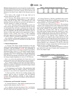 - Permissible variations for diameter, wall thickness, length, and reinforcement placement are specified.