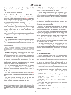 ASTM D5259-24 is a standard published by ASTM International. Its full title is "Standard Test Method for Isolation and Enumeration of Enterococci from Water by the Membrane Filter Procedure". This standard covers: SIGNIFICANCE AND USE 5.1 The enterococci are indicators of the bacteriological quality for potable water, shellfish growing waters, ambient, and recreational waters. A direct relationship between swimming, associated gastroenteritis, and enterococci has been established through epidemiological studies and marine and fresh water bathing beaches. These studies have led to the development of criteria that can be used to establish bathing water standards based on established health-water quality relationships. 5.2 Since small or large volumes of water or dilutions thereof, can be analyzed by the membrane filter technique, a wide range of levels of enterococci in water can be enumerated and detected. SCOPE 1.1 This test method covers a membrane filter (MF) procedure for the detection and enumeration of the enterococci bacteria in water. The enterococci, which include Entero-coccus faecalis (E. faecalis), E. faecium, and their varieties are commonly found in the feces of humans and other warm-blooded animals. Although some strains are ubiquitous and not related to fecal pollution, enterococci in water are an indication of fecal pollution and the possible presence of enteric pathogens. These bacteria are found in water and wastewater in a wide range of densities. The detection limit is one colony forming unit (CFU)/volume filtered. 1.2 This test method has been used successfully with temperate fresh and marine ambient waters, and wastewaters. It is the user’s responsibility to ensure the validity of this test method for waters of untested types. 1.3 The values stated in SI units are to be regarded as standard. The values given in parentheses after SI units are included for information only and are not considered standard. 1.4 This standard does not purport to address all of the safety concerns, if any, associated with its use. It is the responsibility of the user of this standard to establish appropriate safety, health, and environmental practices and determine the applicability of regulatory limitations prior to use. For specific hazard statements, see Section 9. 1.5 This international standard was developed in accordance with internationally recognized principles on standardization established in the Decision on Principles for the Development of International Standards, Guides and Recommendations issued by the World Trade Organization Technical Barriers to Trade (TBT) Committee.
