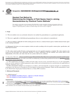 - Applicability: Covers both scrim-reinforced and nonreinforced geomembranes fabricated and seamed in the field using chemical fusion or bodied chemical fusion agents.