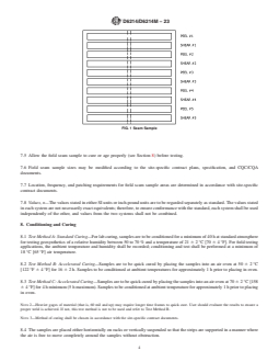 - Sample Preparation: Outlines the requirements for obtaining and curing trial and field seam samples, including dimensions and curing methods (standard and accelerated).