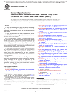 Keywords: ASTM C1504M-20, precast reinforced concrete, three-sided structures, culverts, storm drains, concrete specification, metric, civil engineering standards, stormwater management.