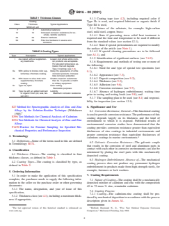 1.1 General—This specification covers the requirements for a coating that is a mixture of cadmium and zinc deposited on metallic products by mechanical deposition. The coating is provided in four thickness classes (see Table 1) and several finish types (see Table 2).