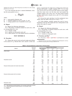 NOTE 3—Options are recommended to determine the average mesh size of the top sieve and the pan. On the coarse end, if the particles have already