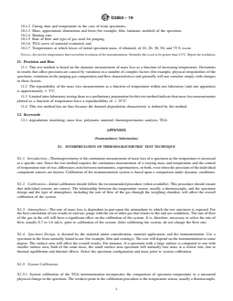 4.1 This thermogravimetric technique uses the record of the mass loss versus the temperature of the specimen during the time