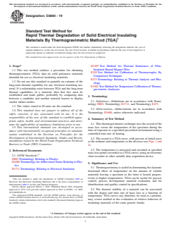 ASTM D3850-19 - Standard Test Method for Rapid Thermal Degradation of Solid Electrical Insulating Materials By Thermogravimetric Method (TGA)