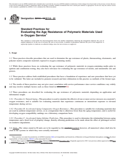 1.2 While these practices focus on evaluating the age resistance of polymeric materials in oxygen-containing media prior to ignition and combustion testing, they also have relevance for evaluating the age resistance of metals, and nonmetallic oils and greases.