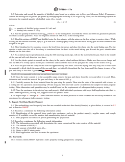 - Reporting Requirements: Specifies minimum data to be recorded, including material identification, preparation details, water content, specimen mass, and mixing ratios.