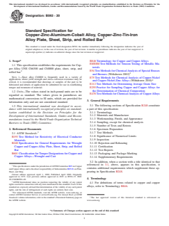 ASTM B592-20 - Standard Specification for Copper-Zinc-Aluminum-Cobalt Alloy, Copper-Zinc-Tin-Iron Alloy Plate, Sheet, Strip, and Rolled Bar
