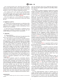 - Details the use of notched and smooth specimens and requirements for precise specimen measurement before and after testing.