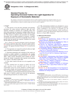 ASTM G153-13(2021) - Standard Practice for Operating Enclosed Carbon Arc Light Apparatus for Exposure of Nonmetallic Materials