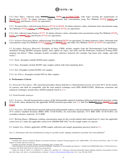 The standard outlines the steps for evaluating the accuracy, precision, and working range of field-portable lead analyzers. Specific requirements are described for extraction procedures and for comparison using certified reference materials or real-world samples.Applicable Matrices
