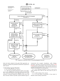 identify the products of alkali-silica reaction; and (3) if available, field service or previous test records to assess performance.