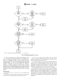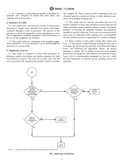 5.3 Some sections of this guide contain flow charts (see Figs. 1-5) that must be worked through, starting from the top of each page. By answering the questions in the diamond-shaped boxes, and following the appropriate arrows, the person planning to sample will be guided toward the most suitable procedures and equipment. The numbers at the bottom of some boxes refer to corresponding paragraphs in the text, which provide information to help the person sampling answer the questions.