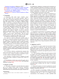 1.4 The behavioral methods described in this guide include locomotory activity, feeding, and social responses, which are critical to the survival of fish (4).