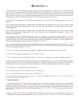 ASTM D6084/D6084M-21 is a standard published by ASTM International. Its full title is "Standard Test Method for Elastic Recovery of Asphalt Materials by Ductilometer". This standard covers: SIGNIFICANCE AND USE 3.1 This test method is useful in confirming that a material has been added to the asphalt to provide a significant elastomeric characteristic. It does not necessarily identify the type or amount of material added. Note 1: The quality of results produced by this standard is dependent on the competence of the personnel performing the procedure and the capability, calibration, and maintenance of the equipment used. Agencies that meet the criteria of Specification D3666 are generally considered capable of competent and objective testing, sampling, inspection, etc. Users of this standard are cautioned that compliance with Specification D3666 alone does not completely ensure reliable results. Reliable results depend on many factors; following the suggestions of Specification D3666 or some similar acceptable guidance provides a means of evaluating and controlling some of those factors. SCOPE 1.1 This test method assesses the elastic recovery of an asphalt material measured by the recoverable strain determined after severing an elongated briquet specimen of the material of the form described in 4.1. The specimens are pulled to a specified distance at a specified speed and at a specified temperature. Unless otherwise specified, the test shall be made at a temperature of 25 ± 0.5 °C [77 ± 0.9 °F] and with a speed of 5 cm/min ± 5 %. 1.2 The values stated in either SI units or inch-pound units are to be regarded separately as standard. The values stated in each system are not necessarily exact equivalents; therefore, to ensure conformance with the standard, each system shall be used independently of the other, and values from the two systems shall not be combined. 1.3 Warning—Mercury has been designated by the United States Environmental Protection Agency and many state agencies as a hazardous material that can cause central nervous system, kidney, and liver damage. Mercury, or its vapor, may be hazardous to health and corrosive to materials. Caution should be taken when handling mercury and mercury-containing products. See the applicable Material Safety Data Sheet (MSDS) for details and EPA’s website (http://www.epa.gov/mercury/index.htm) for additional information. Users should be aware that selling mercury and/or mercury-containing products in your state may be prohibited by state law. 1.4 The text of this standard references notes and footnotes which provide explanatory material. These notes and footnotes (excluding those in tables and figures) shall not be considered as requirements of the standard. 1.5 This standard does not purport to address all of the safety concerns, if any, associated with its use. It is the responsibility of the user of this standard to establish appropriate safety, health, and environmental practices and determine the applicability of regulatory limitations prior to use. 1.6 This international standard was developed in accordance with internationally recognized principles on standardization established in the Decision on Principles for the Development of International Standards, Guides and Recommendations issued by the World Trade Organization Technical Barriers to Trade (TBT) Committee.