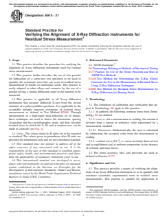 1.1 This practice describes the procedure for verifying the alignment of X-ray diffraction instruments used for residual stress measurements.