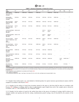 - The standard outlines acceptable chemical compositions for various zinc alloys and architectural grades, requiring conformance through appropriate testing methods (chemical, spectrographic).