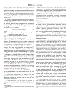 SIGNIFICANCE AND USE 5.1 The analyst may use this document to obtain information on the properties of electron spectrometers and instrumental aspects associated with quantitative surface analysis. SCOPE 1.1 The purpose of this guide is to familiarize the analyst with some of the relevant literature describing the physical properties of modern electrostatic electron spectrometers. 1.2 This guide is intended to apply to electron spectrometers generally used in Auger electron spectroscopy (AES) and X-ray photoelectron spectroscopy (XPS). 1.3 The values stated in inch-pound units are to be regarded as standard. No other units of measurement are included in this standard. 1.4 This standard does not purport to address all of the safety concerns, if any, associated with its use. It is the responsibility of the user of this standard to establish appropriate safety, health, and environmental practices and determine the applicability of regulatory limitations prior to use. 1.5 This international standard was developed in accordance with internationally recognized principles on standardization established in the Decision on Principles for the Development of International Standards, Guides and Recommendations issued by the World Trade Organization Technical Barriers to Trade (TBT) Committee.