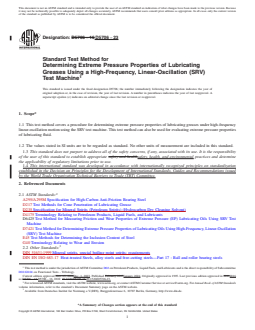 1.1 This test method covers a procedure for determining extreme pressure properties of lubricating greases under high-frequency linear-oscillation motion using the SRV test machine. This test method can also be used for evaluating extreme pressure properties of lubricating fluid.