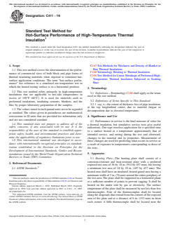 ASTM C411-19 - Standard Test Method for Hot-Surface Performance of High-Temperature Thermal Insulation
