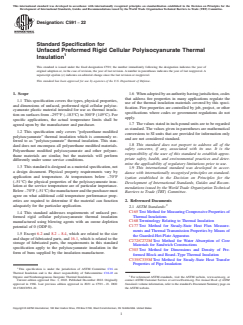 ASTM C591-22 - Standard Specification for Unfaced Preformed Rigid Cellular Polyisocyanurate Thermal Insulation