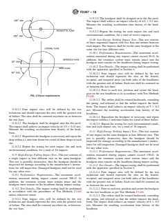 ABSTRACT This specification delas with the performance requirements for head protection used for training and competition in martial arts such as karate, wushu, and taekwondo, where normal contact between participants may be repeated, but is limited to a level that is not intended to produce injury. These activities typically take place in indoor or outdoor environments where the temperature is moderate. This specification recognizes the desirability of a lightweight and streamlined construction, and ventilation; however it is a performance specification, and is not intended to restrict design. Headgears shall be tested for the following and using the following test methods: reference marking, configuration, materials, projections, vision, retention test, stability or roll-off test, low-energy falling impact test, high-energy falling impact test, low-energy striking impact test, high-energy striking impact test, and high and low speed errors. The apparatus which shall be used are the test headforms, stability test instruments and equipment, falling impact test instruments and equipment, and striking impact instruments and equipment. The significance and use, conditioning environments, and test schedule are also detailed. SCOPE 1.1 This specification covers performance requirements for head protection used for training and competition in combative sports such as karate, wushu, and taekwondo, where normal contact between participants may be repeated, but is limited to a level that is not intended to produce injury. These activities typically take place in indoor or outdoor environments where the temperature is moderate. This specification recognizes the desirability of a lightweight and streamlined construction, and ventilation; however, it is a performance specification, and is not intended to restrict design. 1.2 All testing and requirements of this specification shall be in accordance with Test Methods F1446, except where noted in this specification. 1.3 Partial utilization of this standard is prohibited. Any statement of compliance with this specification shall be a certification that the product meets all of the requirements of the specification in its entirety. A product that fails to meet any one of the requirements of this specification is considered to have failed the specification, and shall not be distributed or sold with any indication that it meets parts of the specification. 1.4 The values stated in SI units are to be regarded as standard. No other units of measurement are included in this standard. 1.5 The following safety caveat applies to the chemical, mechanical, or physical, or a combination thereof, test methods described herein and is meant specifically for those performing the tests (in an effort to provide them with notice to take the appropriate precautions when conducting the tests): This standard does not purport to address all of the safety concerns, if any, associated with its use. It is the responsibility of the user of this standard to establish appropriate safety, health, and environmental practices and determine the applicability of regulatory limitations prior to use. 1.6 This international standard was developed in accordance with internationally recognized principles on standardization established in the Decision on Principles for the Development of International Standards, Guides and Recommendations issued by the World Trade Organization Technical Barriers to Trade (TBT) Committee.