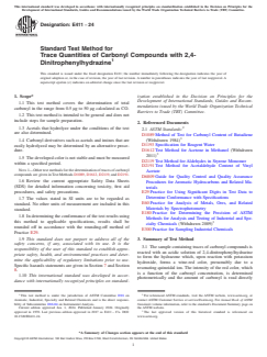 Keywords: ASTM E411-24, carbonyl compounds, aldehydes, ketones, 2,4-dinitrophenylhydrazine, DNPH method, trace analysis, photometric detection, industrial chemicals, quality control.