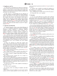 5.2 This practice is recommended for the collection of settled dust samples from hard, relatively smooth nonporous surfaces.