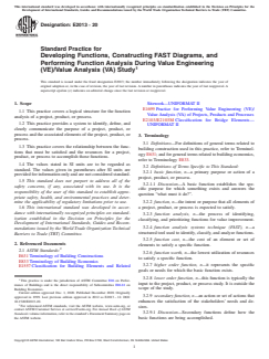 ASTM E2013-20 - Standard Practice for Developing Functions, Constructing FAST Diagrams, and Performing Function Analysis During Value Engineering (VE)/Value Analysis (VA) Study